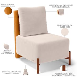 Revestimento do encosto em Couríssimo na cor Whisky do assento em Suede na cor Bege, de alta qualidade.