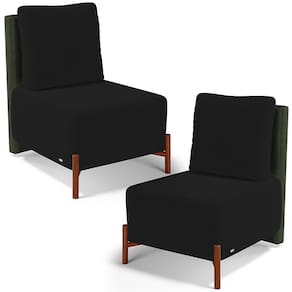 Kit 02 Poltronas Decorativas Sala de Estar Living Pés Madeira Hungria L02 Couríssimo Verde Suede Preto - Lyam