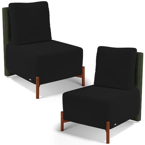 Revestimento do encosto em Couríssimo na cor Verde do assento em Suede na cor Preto, de alta qualidade.