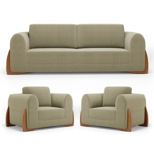 Kit 02 Poltronas e 01 Sofá Bloom 180cm 02 Lugares com Pés de Madeira Bouclê Bege - Abmaza
