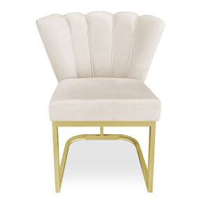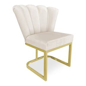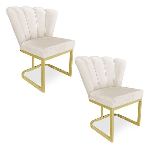 Kit 02 Poltronas Flor Veludo Base Metálica Industrial Dourado - Pallazio - Bege Claro