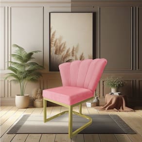 A Cadeira Poltrona Flor em veludo é uma peça que une estilo e conforto de maneira única. Seu revestimento em veludo proporciona um toque suave e elegante, enquanto a Base Metálica confere um charme adicional ao design da poltrona.