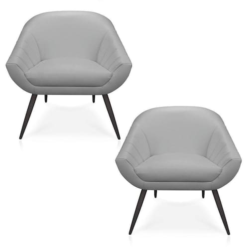 Quer uma poltrona irresistível e com design inovador? A poltrona Giovana atende todos requisitos que faltavam para você leva-lá para sua casa. Com uma personalidade única e extremamente confortável ela vai deixar seu ambiente decorado e pronto para receber suas visitas e amigos. Sua durabilidade e conforto é seu diferencial. Seus Pés de Ferro dão a instabilidade necessária para suportar 120 kg. Dimensões Altura total: 86 cm Largura total: 79 cm Profundidade total: 70 cm Altura do encosto: 44 cm Largura do assento: 50 cm Profundidade do assento: 52 cm Altura do chão ao assento: 47 cm Espessura do assento: 17 cm Tamanho dos pés: 30 cm Espessura do braço: 9 cm Peso: 14 kg Especificações do Produto Estrutura: Madeira Eucalipto Espuma: D-26 Tecido: Corino Tipo de pés: Pés palito de Ferro Peso Suportado: Até 120 Kg Garantia: 90 dias contra defeito de fabricação Montagem: O produto vai montado, apenas rosquear os pés Instruções de Limpeza: Utilizar um pano limpo e levemente úmido Você irá receber: 01 Volume com 02 Produtos Observações Relevantes - Todos os produtos vão embalados com total segurança; - As cores dos produtos podem sofrer alterações dependendo do seu monitor; - Para futuras compras, não garantimos a mesma tonalidade de cor, pois existe variação a cada lote do fabricante do tecido; - As imagens são meramente ilustrativas, não acompanham objetos de decoração e eletros; - Confira as dimensões do produto no momento da compra e certifique-se de que passará normalmente por escadas, elevadores, portas e corredores; - Importante: Por se tratar de estofado as medidas podem ter uma pequena variação em até 3 cm; - Não nos responsabilizamos no ato da entrega por montagens, desmontagens, instalações de produtos; - Não nos responsabilizamos no ato da entrega por subir escadas, elevadores, nem utilização de guinchos ou equipamentos similares para acesso a pisos superiores em apartamentos; - A entrega do produto é realizada em todo território nacional, até onde as rodovias alcançam, entregas fluviais ou aéreas devem ser cotadas a parte; - Observando as orientações acima, evita-se futuros desagrados ou imprevistos com a entrega do produto. Havendo despesas adicionais, serão de responsabilidade do cliente;