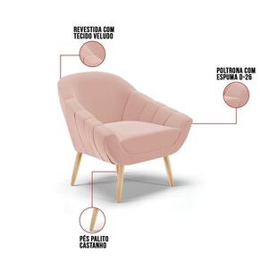Kit 02 Poltronas Giovana Veludo Rosê Pés Palito Natural D03 - D'rossi A poltrona Giovana é uma peça indispensável para momentos de descanso depois de um dia longo de trabalho. E não há nada melhor que poder relaxar em um móvel de extremo conforto não é mesmo! Afinal ela dará aquele toque de perfeição ao seu ambiente. Conta com uma estrutura reforçada em madeira eucalipto que oferece alta resistência e qualidade ao móvel. Produzida com Pés Palito Natural que suportam até 120 kg, seu estofamento é com espuma de densidade D-23, revestido em tecido Veludo no tom Rose que contribui para que o assento fique firme por mais tempo. Sua durabilidade e conforto é seu diferencial. Ter uma já é ótimo, agora, ter duas é maravilhoso! Garanta já o seu Kit. Dimensões Altura total: 86 cm Largura total: 79 cm Profundidade total: 70 cm Altura do encosto: 44 cm Largura do assento: 50 cm Profundidade do assento: 52 cm Altura do chão ao assento: 45 cm Espessura do assento: 17 cm Altura do chão ao braço: 50 cm Altura interna do braço: 15 cm Tamanho dos pés: 30 cm Espessura do braço: 9 cm Peso: 14 kg Especificações do Produto Estrutura: Madeira Eucalipto Espuma: D-23 Tecido: Veludo Tipo de pés: Pés Palito Natural Peso suportado: Até 120 Kg Garantia: 90 dias contra de fabricação Montagem: O produto vai montado, apenas rosquear os pés Instruções de limpeza: Utilizar um pano limpo e levemente úmido Você irá receber: 02 Volumes com 02 Poltronas Observações Relevantes - Todos os produtos vão embalados com total ; - As cores dos produtos podem sofrer alterações dependendo do seu monitor; - Para futuras compras, não garantimos a mesma tonalidade de cor, pois existe variação a cada lote do fabricante do tecido; - As imagens são meramente ilustrativas, não acompanham objetos de decoração e eletros; - Confira as dimensões do produto no momento da compra e certifique-se de que passará normalmente por escadas, elevadores, portas e corredores; - Importante: Por se tratar de estofado as medidas podem ter uma pequena variação em até 3 cm; - Não nos responsabilizamos no ato da por montagens, desmontagens, instalações de produtos; - Não nos responsabilizamos no ato da por subir escadas, elevadores, nem utilização de guinchos ou equipamentos similares para acesso a pisos superiores em apartamentos; - A do produto é realizada em todo território , até onde as rodovias alcançam, fluviais ou aéreas devem ser cotadas a parte; - Observando as orientações acima, evita-se futuros desagrados ou imprevistos com a do produto. Havendo despesas adicionais, serão de responsabilidade do cliente;