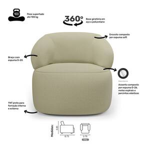 As percintas elásticas no assento aumentam a resistência e durabilidade, enquanto os braços, com espuma D-20, oferecem suporte adicional. A base em aço giratório e poliuretano da Poltrona Glee não só permite uma rotação suave, mas também acrescenta um toque moderno ao seu espaço.