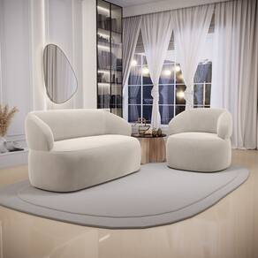 Kit 02 Poltronas Giratória e 01 Sofá Orgânico Glee 02 Lugares 140cm Veludo Bege - Abmaza