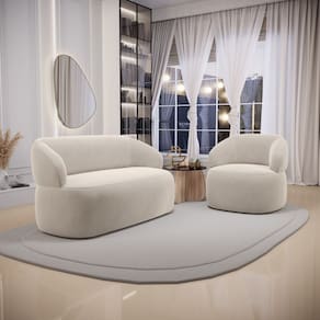 Kit 02 Poltronas Giratória e 01 Sofá Orgânico Glee 03 Lugares 170cm Veludo Bege - Abmaza