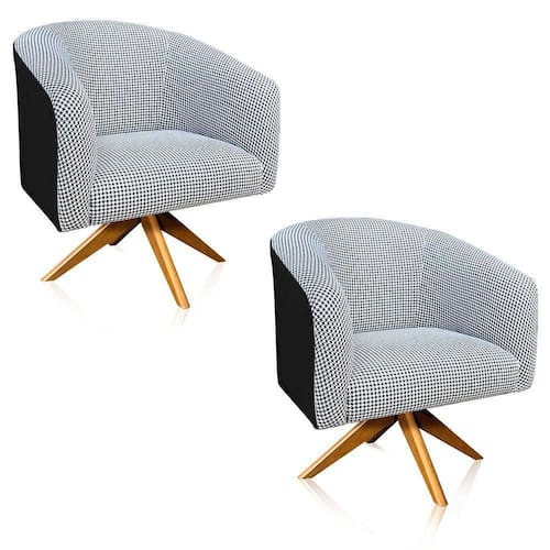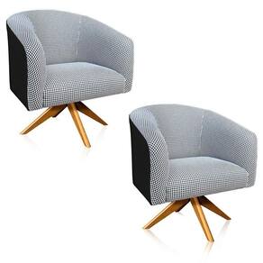 Kit 02 Poltrona Giratória Stella Linho A72 com Corino Base Madeira - D'Rossi