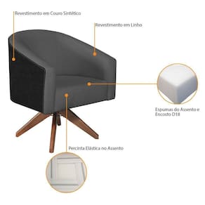 Especificações Técnicas do Kit 02 Poltronas Luiza Base Giratória de Madeira Factor Preto e Linho: