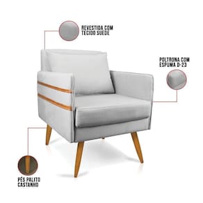 Que tal a Poltrona Mari? Imagine-se utilizando esse produto e usufruindo de todos os benefícios que ela oferece. Usar essa poltrona é bem simples! Pode ser utilizada para evidenciar e enriquecer o seu ambiente, descansar depois de um dia longo de trabalho, ver aquela série favorita ou simplesmente ler seu livro predileto. Sua estrutura é confeccionada em madeira de eucalipto proveniente de reflorestamento, suportando em média até 120 Kg, possuí seus pés em madeira, garantindo uma maior resistência e durabilidade ao produto, o estofamento do assento e encosto é composto de espuma D-23, revestido em tecido Suede no tom Cinza. Então, se a sua dificuldade é a otimização de espaço, a poltrona além de confortável e sofisticada, traz toda a funcionalidade que você precisa. Apenas algumas unidades estão disponíveis, separe o seu Kit 02 Poltronas Mari antes que acabem!