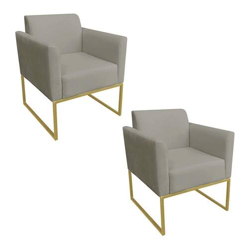 Kit 02 Poltronas Marisa Suede Base Metálica Dourado DRossi
