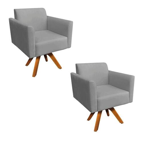 Kit 02 Poltronas Giratória Marisa Suede Base Madeira MM30 D'Rossi