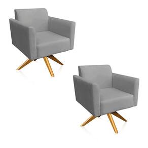 Kit 02 Poltronas Giratória Marisa Suede Base Madeira MA30 D'Rossi
