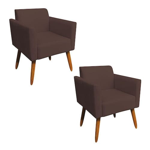 Kit 02 Poltronas Marisa Suede Pés Palito Castanho D'Rossi