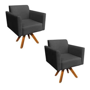 Kit 02 Poltronas Giratória Marisa Suede Base Madeira MM30 D'Rossi