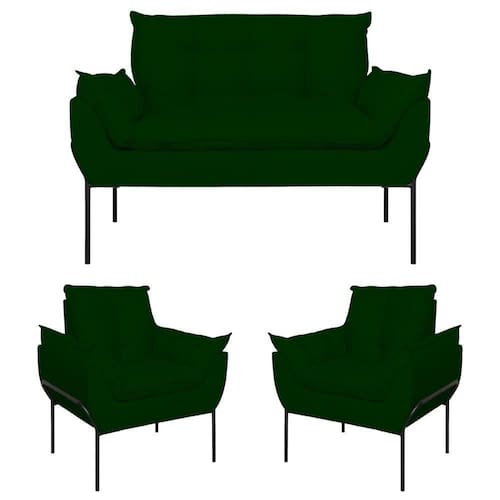 Tipo De Produto: Conjunto para Sala de Estar | Desenho Do Tecido: Liso | Estilo: Moderno | Cor Dos Pés: Preto | Unidades Por Kit: 3 | Altura: 86,5 cm | Marca: Balaqui Decor | Tipo de Garantia: Garantia do Fabricante | Coleção de Antiguidade: Não | Móvel Dobrável: Não | Dimensão (A x L x C): 86,5 x 132 x 61 | Estofado: Suede | de Assentos: 4 | Duração da Garantia: 3 meses | Largura: 132 cm | País de Origem: | Profundidade: 61 cm | Peso do Item (itemWeight): 22 kg | Material: Madeira | Fabricante: Balaqui Estofados | Montagem: Montagem completa | Peso Suportado: 150 kg Cor: Verde