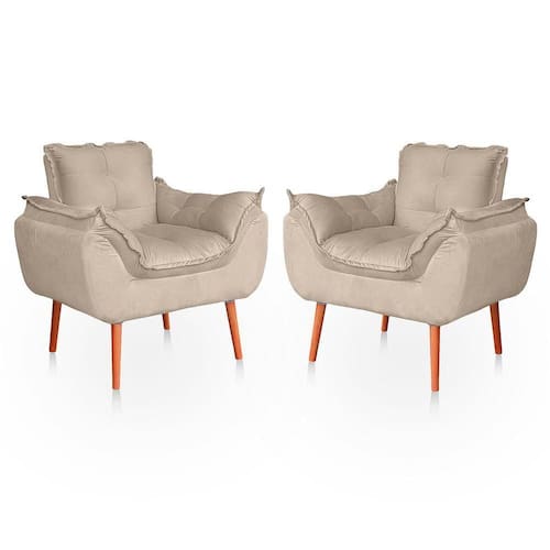 Kit 02 Poltronas Opala Para Sala Confortável Resistente Veludo Bege Rosê