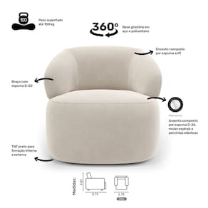 As percintas elásticas no assento aumentam a resistência e durabilidade, enquanto os braços, com espuma D-20, oferecem suporte adicional. A base em aço giratório e poliuretano não só permite uma rotação suave, mas também acrescenta um toque moderno ao seu espaço.