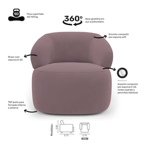 As percintas elásticas no assento aumentam a resistência e durabilidade, enquanto os braços, com espuma D-20, oferecem suporte adicional. A base em aço giratório e poliuretano não só permite uma rotação suave, mas também acrescenta um toque moderno ao seu espaço.