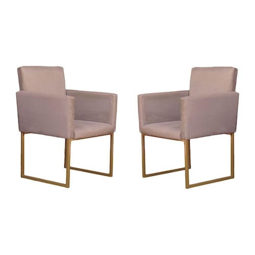 Kit 02 Poltronas Decorativas Klara Pés Base Ferro Dourada