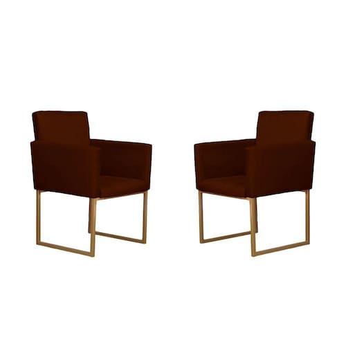Kit 02 Poltronas Decorativas Klara Pés Base Ferro Dourada