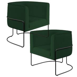 O Kit 02 Poltronas Decorativas Fixa Base de Aço Preto Betina D02 Veludo Verde Musgo C-303 - Lyam Decor exala formosura e elegância! Excelente opção para dispor em sua sala de estar ou espera, recepção, hall de entrada, dormitório, qualquer área de circulação ou antessala entre um cômodo e outro, as possibilidades de combinação são infinitas. Seu protagonismo é notório, sem sombra de dúvidas é perfeita para qualquer ambientação que desejar colocá-la.