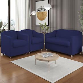 Kit 02 Poltronas Reforçada Clinica + Namoradeira Suede Tilla Cor:azul Marinho - Azul Doce
