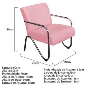 Gostaria de um móvel que trouxesse mais elegância e sofisticação para o seu lar? O Kit 02 Poltronas Sara é sua melhor opção! Com característica moderna e com acabamento de qualidade, este produto atenderá suas expectativas! Não perca essa oportunidade e adquira já a sua! Especificações Técnicas da Poltrona Decorativa Sara: - Altura: 80 cm; - Largura: 60 cm; - Profundidade: 70 cm; - Altura do Assento: 45 cm; - Altura do Braço: 59 cm; - Largura do Assento: 55 cm; - Profundidade do Assento: 55 cm; - Largura do Encosto: 55 cm; - Altura do Encosto: 42 cm; - Espessura do Assento: 16 cm; - Espessura do Encosto: 13 cm; - Peso: 10 kg. - Peso Suportado: 120 kg. Diferenciais da Poltrona Decorativa Sara: - Material da Estrutura: fabricado com Madeira Pinus e Eucalipto Reflorestada, e alguns detalhes em MDF; - Tipo de Assento: estofado e com espuma de densidade D-26; - Tipo de Encosto: estofado e com espuma de densidade D-18; - Detalhes dos Pés: pés e braços cromados, com alta resistência; - Volumes: nessa compra você receberá DUAS POLTRONAS. ATENÇÃO: a transportadora pode entregá-las juntas ou separadas, nesse último caso, inclusive com dias de diferença na entrega. Recomendações de limpeza: -Limpar com flanela limpa e seca. Não molhar o móvel e não expor em lugar úmido ou próximo de fontes de calor. Não usar produtos abrasivos. Observações Importantes: - As imagens ambientadas são meramente ilustrativas e podem apresentar itens que não compõe o produto; - Objetos decorativos que aparecem na foto não acompanham o produto; - As cores do produto podem variar de acordo com o monitor, a iluminação do ambiente, ou sua percepção visual; - A Poltrona Decorativa Sara chegará desmontada para você, bastando parafusar os pés; - Confira as dimensões antes da compra e certifique-se de que o produto passará por elevadores, portas e corredores, já que nossa entrega não inclui a subida de lances de escada, ou o lançamento de produtos; - Ao receber seus produtos, verifique no ato do recebimento qualquer dano na embalagem. Caso tenha alguma avaria, favor não assinar o comprovante de recebimento (A transportadora tem obrigação de esperar a conferência); - Produto para uso residencial em ambiente interno, não devendo ficar exposto diretamente ao sol, calor e umidades excessivas.