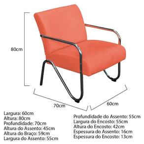 Gostaria de um móvel que trouxesse mais elegância e sofisticação para o seu lar? O Kit 02 Poltronas Sara é sua melhor opção! Com característica moderna e com acabamento de qualidade, este produto atenderá suas expectativas! Não perca essa oportunidade e adquira já a sua! Especificações Técnicas da Poltrona Decorativa Sara: - Altura: 80 cm; - Largura: 60 cm; - Profundidade: 70 cm; - Altura do Assento: 45 cm; - Altura do Braço: 59 cm; - Largura do Assento: 55 cm; - Profundidade do Assento: 55 cm; - Largura do Encosto: 55 cm; - Altura do Encosto: 42 cm; - Espessura do Assento: 16 cm; - Espessura do Encosto: 13 cm; - Peso: 10 kg. - Peso Suportado: 120 kg. Diferenciais da Poltrona Decorativa Sara: - Material da Estrutura: fabricado com Madeira Pinus e Eucalipto Reflorestada, e alguns detalhes em MDF; - Tipo de Assento: estofado e com espuma de densidade D-26; - Tipo de Encosto: estofado e com espuma de densidade D-18; - Detalhes dos Pés: pés e braços cromados, com alta resistência; - Volumes: nessa compra você receberá DUAS POLTRONAS. ATENÇÃO: a transportadora pode entregá-las juntas ou separadas, nesse último caso, inclusive com dias de diferença na entrega. Recomendações de limpeza: -Limpar com flanela limpa e seca. Não molhar o móvel e não expor em lugar úmido ou próximo de fontes de calor. Não usar produtos abrasivos. Observações Importantes: - As imagens ambientadas são meramente ilustrativas e podem apresentar itens que não compõe o produto; - Objetos decorativos que aparecem na foto não acompanham o produto; - As cores do produto podem variar de acordo com o monitor, a iluminação do ambiente, ou sua percepção visual; - A Poltrona Decorativa Sara chegará desmontada para você, bastando parafusar os pés; - Confira as dimensões antes da compra e certifique-se de que o produto passará por elevadores, portas e corredores, já que nossa entrega não inclui a subida de lances de escada, ou o lançamento de produtos; - Ao receber seus produtos, verifique no ato do recebimento qualquer dano na embalagem. Caso tenha alguma avaria, favor não assinar o comprovante de recebimento (A transportadora tem obrigação de esperar a conferência); - Produto para uso residencial em ambiente interno, não devendo ficar exposto diretamente ao sol, calor e umidades excessivas.