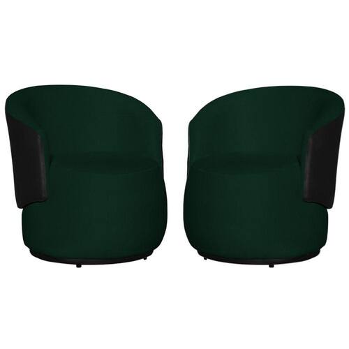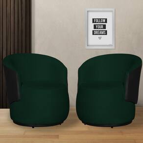 Kit 02 Poltronas Tecido Suede Com Composê em Corino Preto Beatriz - Verde