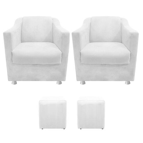 Com uma estrutura e beleza única, o kit Duas Poltronas Tilla e Dois Puffs Dado se adapta em qualquer ambiente, tornando-o ainda mais elegante e harmonioso. Um kit luxuoso de alta qualidade, dará um toque especial em seu ambiente. Não perca essa oportunidade de levar mais charme e requinte ao seu cômodo, adquira já o seu! Especificações Técnicas da Poltrona Decorativa Tilla: - Altura: 75 cm; - Largura: 65 cm; - Profundidade: 70 cm; - Altura do Assento: 44 cm; - Altura do Braço: 62 cm; - Largura do Assento: 45 cm; - Profundidade do Assento: 51 cm; - Espessura do Assento: 15 cm; - Altura do Encosto: 43 cm; - Largura do Encosto: 47 cm; - Espessura do Encosto: 10 cm; - Altura dos Pés: 7 cm; - Peso: 25 kg. - Peso Suportado: 120 kg. Especificações Técnicas do Puff Decorativo Dado: - Altura: 48 cm; - Largura: 36 cm; - Profundidade: 36 cm; - Altura dos Pés: 2 cm; - Peso: 13 kg. - Peso Suportado: 100 kg. Diferenciais do Kit Duas Poltronas Tilla e Dois Puffs Dado: - Material da Estrutura: fabricado com Madeira Pinus e Eucalipto Reflorestada, e alguns detalhes em MDF; - Tipo de Assento: estofado e com espuma de densidade D-26; - Tipo de Encosto: estofado e com espuma de densidade D-18; - Detalhes dos Pés: acompanha kit de pés (4 pés para cada poltrona) cromados e sapatas plásticas, com alta resistência; - Volumes: nessa compra você receberá DUAS POLTRONAS E DOIS PUFFs. ATENÇÃO: a transportadora pode entregá-los juntos ou separados, nesse último caso, inclusive com dias de diferença na entrega. Recomendações de limpeza: -Limpar com flanela limpa e seca. Não molhar o móvel e não expor em lugar úmido ou próximo de fontes de calor. Não usar produtos abrasivos. Observações Importantes: - As imagens ambientadas são meramente ilustrativas e podem apresentar itens que não compõe o produto; - Objetos decorativos que aparecem na foto não acompanham o produto; - As cores do produto podem variar de acordo com o monitor, a iluminação do ambiente, ou sua percepção visual; - Poltrona Decorativa Tilla chegará montada para você, bastando rosquear os pés; - O Puff Decorativo Dado chegará montado para você; - Confira as dimensões antes da compra e certifique-se de que o produto passará por elevadores, portas e corredores, já que nossa entrega não inclui a subida de lances de escada, ou o lançamento de produtos; - Ao receber seus produtos, verifique no ato do recebimento qualquer dano na embalagem. Caso tenha alguma avaria, favor não assinar o comprovante de recebimento (A transportadora tem obrigação de esperar a conferência); - Produto para uso residencial em ambiente interno, não devendo ficar exposto diretamente ao sol, calor e umidades excessivas.