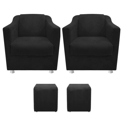 Com uma estrutura e beleza única, o kit Duas Poltronas Tilla e Dois Puffs Dado se adapta em qualquer ambiente, tornando-o ainda mais elegante e harmonioso. Um kit luxuoso de alta qualidade, dará um toque especial em seu ambiente. Não perca essa oportunidade de levar mais charme e requinte ao seu cômodo, adquira já o seu! Especificações Técnicas da Poltrona Decorativa Tilla: - Altura: 75 cm; - Largura: 65 cm; - Profundidade: 70 cm; - Altura do Assento: 44 cm; - Altura do Braço: 62 cm; - Largura do Assento: 45 cm; - Profundidade do Assento: 51 cm; - Espessura do Assento: 15 cm; - Altura do Encosto: 43 cm; - Largura do Encosto: 47 cm; - Espessura do Encosto: 10 cm; - Altura dos Pés: 7 cm; - Peso: 25 kg. - Peso Suportado: 120 kg. Especificações Técnicas do Puff Decorativo Dado: - Altura: 48 cm; - Largura: 36 cm; - Profundidade: 36 cm; - Altura dos Pés: 2 cm; - Peso: 13 kg. - Peso Suportado: 100 kg. Diferenciais do Kit Duas Poltronas Tilla e Dois Puffs Dado: - Material da Estrutura: fabricado com Madeira Pinus e Eucalipto Reflorestada, e alguns detalhes em MDF; - Tipo de Assento: estofado e com espuma de densidade D-26; - Tipo de Encosto: estofado e com espuma de densidade D-18; - Detalhes dos Pés: acompanha kit de pés (4 pés para cada poltrona) cromados e sapatas plásticas, com alta resistência; - Volumes: nessa compra você receberá DUAS POLTRONAS E DOIS PUFFs. ATENÇÃO: a transportadora pode entregá-los juntos ou separados, nesse último caso, inclusive com dias de diferença na entrega. Recomendações de limpeza: -Limpar com flanela limpa e seca. Não molhar o móvel e não expor em lugar úmido ou próximo de fontes de calor. Não usar produtos abrasivos. Observações Importantes: - As imagens ambientadas são meramente ilustrativas e podem apresentar itens que não compõe o produto; - Objetos decorativos que aparecem na foto não acompanham o produto; - As cores do produto podem variar de acordo com o monitor, a iluminação do ambiente, ou sua percepção visual; - Poltrona Decorativa Tilla chegará montada para você, bastando rosquear os pés; - O Puff Decorativo Dado chegará montado para você; - Confira as dimensões antes da compra e certifique-se de que o produto passará por elevadores, portas e corredores, já que nossa entrega não inclui a subida de lances de escada, ou o lançamento de produtos; - Ao receber seus produtos, verifique no ato do recebimento qualquer dano na embalagem. Caso tenha alguma avaria, favor não assinar o comprovante de recebimento (A transportadora tem obrigação de esperar a conferência); - Produto para uso residencial em ambiente interno, não devendo ficar exposto diretamente ao sol, calor e umidades excessivas.