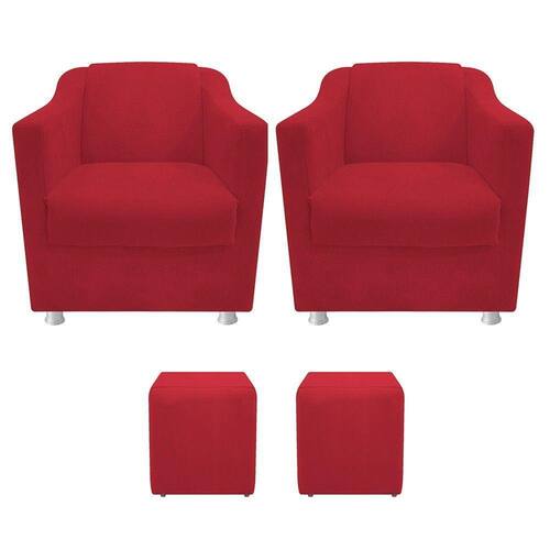 Com uma estrutura e beleza única, o kit Duas Poltronas Tilla e Dois Puffs Dado se adapta em qualquer ambiente, tornando-o ainda mais elegante e harmonioso. Um kit luxuoso de alta qualidade, dará um toque especial em seu ambiente. Não perca essa oportunidade de levar mais charme e requinte ao seu cômodo, adquira já o seu! Especificações Técnicas da Poltrona Decorativa Tilla: - Altura: 75 cm; - Largura: 65 cm; - Profundidade: 70 cm; - Altura do Assento: 44 cm; - Altura do Braço: 62 cm; - Largura do Assento: 45 cm; - Profundidade do Assento: 51 cm; - Espessura do Assento: 15 cm; - Altura do Encosto: 43 cm; - Largura do Encosto: 47 cm; - Espessura do Encosto: 10 cm; - Altura dos Pés: 7 cm; - Peso: 25 kg. - Peso Suportado: 120 kg. Especificações Técnicas do Puff Decorativo Dado: - Altura: 48 cm; - Largura: 36 cm; - Profundidade: 36 cm; - Altura dos Pés: 2 cm; - Peso: 13 kg. - Peso Suportado: 100 kg. Diferenciais do Kit Duas Poltronas Tilla e Dois Puffs Dado: - Material da Estrutura: fabricado com Madeira Pinus e Eucalipto Reflorestada, e alguns detalhes em MDF; - Tipo de Assento: estofado e com espuma de densidade D-26; - Tipo de Encosto: estofado e com espuma de densidade D-18; - Detalhes dos Pés: acompanha kit de pés (4 pés para cada poltrona) cromados e sapatas plásticas, com alta resistência; - Volumes: nessa compra você receberá DUAS POLTRONAS E DOIS PUFFs. ATENÇÃO: a transportadora pode entregá-los juntos ou separados, nesse último caso, inclusive com dias de diferença na entrega. Recomendações de limpeza: -Limpar com flanela limpa e seca. Não molhar o móvel e não expor em lugar úmido ou próximo de fontes de calor. Não usar produtos abrasivos. Observações Importantes: - As imagens ambientadas são meramente ilustrativas e podem apresentar itens que não compõe o produto; - Objetos decorativos que aparecem na foto não acompanham o produto; - As cores do produto podem variar de acordo com o monitor, a iluminação do ambiente, ou sua percepção visual; - Poltrona Decorativa Tilla chegará montada para você, bastando rosquear os pés; - O Puff Decorativo Dado chegará montado para você; - Confira as dimensões antes da compra e certifique-se de que o produto passará por elevadores, portas e corredores, já que nossa entrega não inclui a subida de lances de escada, ou o lançamento de produtos; - Ao receber seus produtos, verifique no ato do recebimento qualquer dano na embalagem. Caso tenha alguma avaria, favor não assinar o comprovante de recebimento (A transportadora tem obrigação de esperar a conferência); - Produto para uso residencial em ambiente interno, não devendo ficar exposto diretamente ao sol, calor e umidades excessivas.