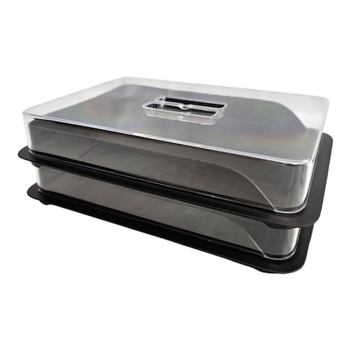 Kit 02 Porta Frios Organizador Geladeira Acrílico e Plástico Cor: Preto Kit 02 Porta Frios Organizador de Geladeira Tampa Acrílico Plástico Livre de BPA, conserva e mantem o sabor dos alimentos, mais cor e beleza em sua mesa, festa ou eventos