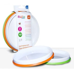 Kit 02 Pratos Infantil Base Antideslizante Sem Bpa 18cm Desenvolvidos para estimular a independência e coordenação motora do bebê, o kit de pratinhos com base antideslizante minimiza a bagunça durante o aprendizado da criança. Chega de pratos virados e a comida espalhada na mesa, no chão e nas roupinhas! Assim como todos os produtos de alimetação da Comtac Kids, este também é 100% livre de Bisfenol A (BPA Free)! CaracterísticaDesenvolvido para estimular a independência da criança;Base antideslizante;Minimiza a bagunça durante o aprendizado;Estimula a coordenação motora do bebê;Ideal para uso sobre a mesa ou caldeirãoPara crianças com +6 meses Dimensões: Idade Adequada + 6 mesesBPA Free SimCategoria AlimentaçãoMedidas 130 x 185 x 73 mm (L x A x P)Composição do Material Borracha Termoplástica (TPR), Polipropileno (PP), Livre de BPA, Chumbo e FtalatoTipo de Embalagem Hang TagPeso 121g Marca: Não Informado
