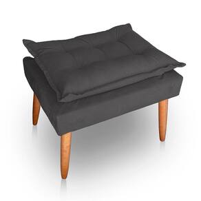 Kit 02 Puff Para Sala E Quarto Madeira Decorativo Opala Suede Cinza