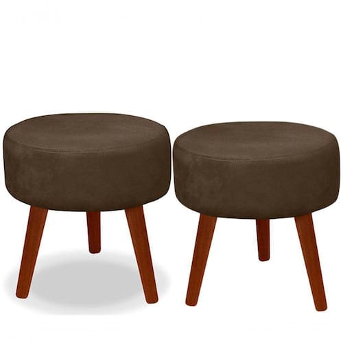 Kit 02 Puff Redondo Decorativo Panqueta De Apoiar Os Pés Suede Marrom
