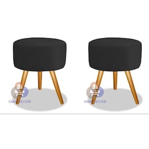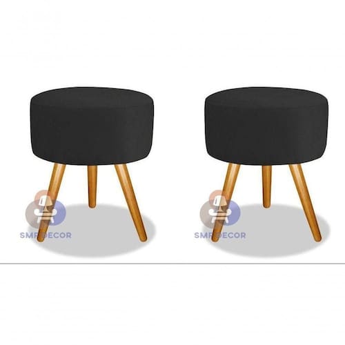 Kit 02 Puff Redondo Pés Palito Preto - Puff Redondo