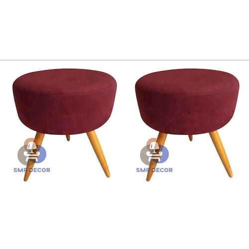 Kit 02 Puff Redondo Pés Palito Vinho / Bordô