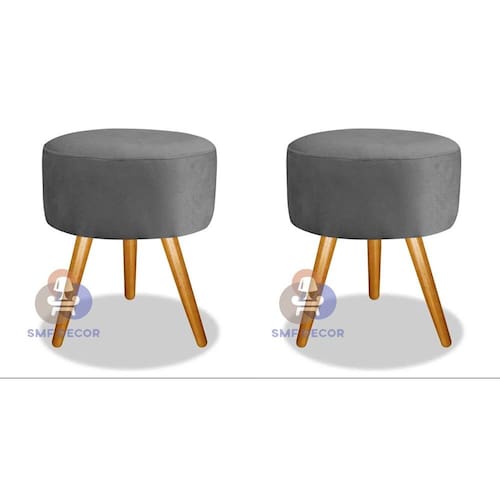 Kit 02 Puff Redondo Pés Palito Cinza - Puff Redondo Puff Decorativo Redondo - Conforto e Estilo para o Seu Ambiente
