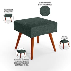 Kit 02 Puffs Banqueta Com Pés Palito Linho Verde Musgo