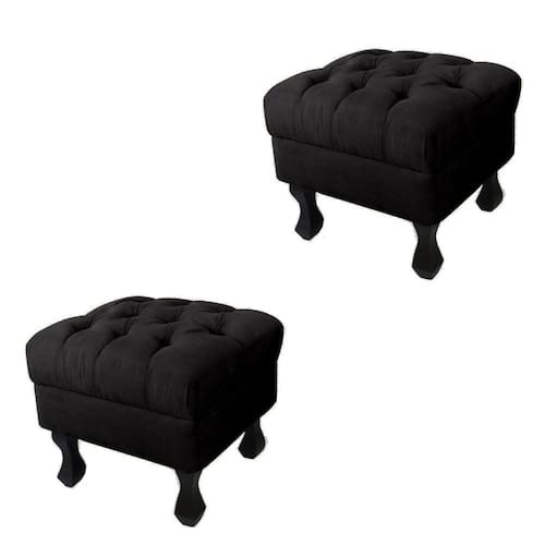 Kit 02 Puffs Decorativo Em Captonê Retrô Luis Xv Suede Preto - LM DECOR