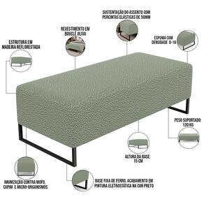 Pensando na praticidade do dia-dia, o Puff Decorativo Sala de Estar Bali W01 Base Ferro 120x50 cm Bouclê Oliva - Lyam Decor se faz perfeito para a sua ambientação! É extremamente confortável, ideal para quem procura por funcionalidade e beleza embutidos num único produto. Estruturado com espuma macia e de alta densidade e revestimento de excelente qualidade, além de seus belos pés de metal que arrematam muito bem toda a composição deixando-o ainda mais elegante.