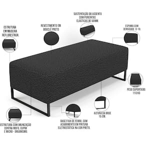 Pensando na praticidade do dia-dia, o Kit 02 Puff Decorativo Sala de Estar Bali W01 Base Ferro 120x50 cm Bouclê Preto - Lyam Decor se faz perfeito para a sua ambientação! É extremamente confortável, ideal para quem procura por funcionalidade e beleza embutidos num único produto. Estruturado com espuma macia e de alta densidade e revestimento de excelente qualidade, além de seus belos pés de metal que arrematam muito bem toda a composição deixando-o ainda mais elegante.