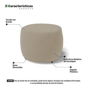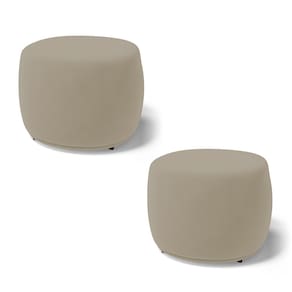 Kit 02 Puffs Decorativos Living Aisha Orgânico Redondo Suede Bege - Abmaza
