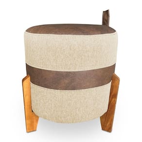 Kit 02 Puffs Le Mans Linho Dourado E Corano Nozes Base De Madeira - Pallazio