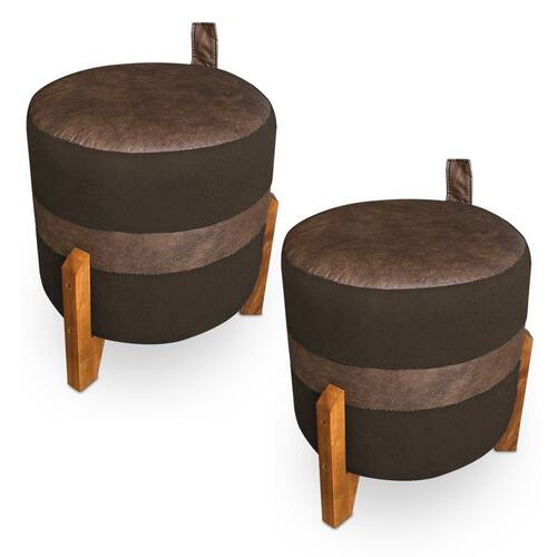 Kit 02 Puffs Le Mans Veludo Marrom e Corano Nozes Base de Madeira - Pallazio