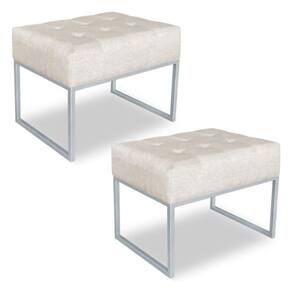 Kit 02 Puffs Lisa Suede Base Metálica Industrial Prata Preto