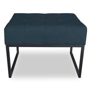 Kit 02 Puffs Lisa Suede Base Metálica Industrial Preto - Pallazio Cor Azul Marinho