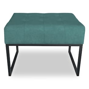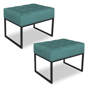 Kit 02 Puffs Lisa Suede Base Metálica Industrial Preto - Pallazio Cor Azul Turquesa